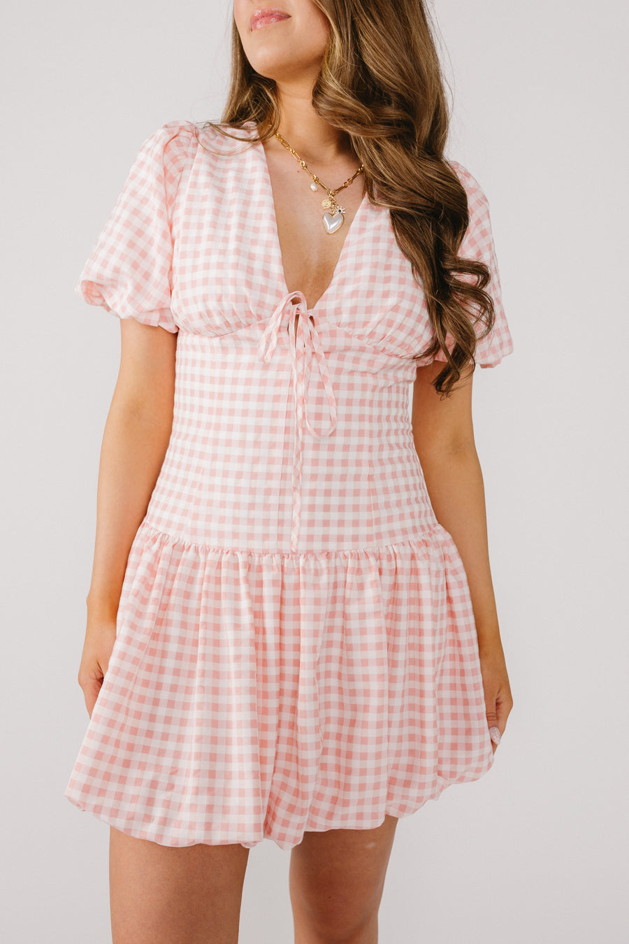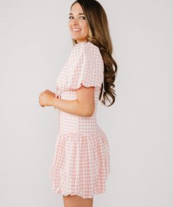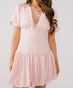 Light pink and white gingham dress